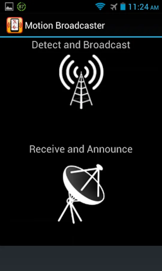 Motion Broadcaster is a combination of a motion sensor/detector and broadcaster using the device's accelerometer (not camera). The accelerometer measures the device's vibration and movement. A minimum of two devices are required as one will play the role of the motion sensor and broadcast the intensity of detected movements while the other(s) will act as listener(s) notifying you when motion above a certain threshold is detected.