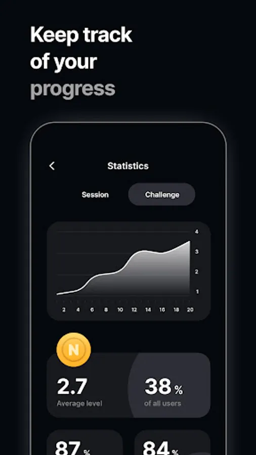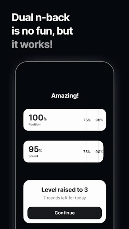 TRACK YOUR PROGRESS: In order to help you stay motivated, the N-Back Challenge allows you to visually monitor your progress over time, build up “streaks,” and compare yourself against other learners across various stats.