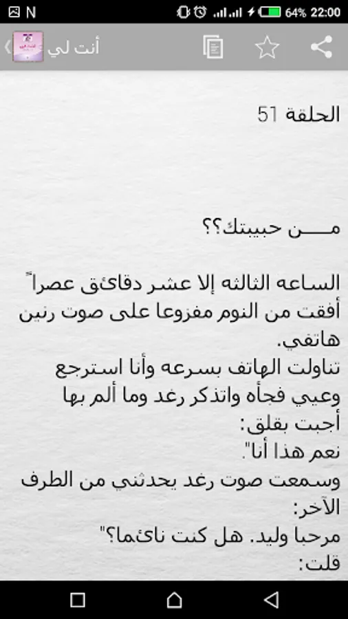Written by Mona Almarshoud Publisher: Atyaf Publishing About the novel: Creature broke into my life! My uncle and his wife died in an unfortunate accident two months ago, leaving their only child, Raghad, who is about three years old ... to live an orphan for life. At first, the little girl stayed in her aunt's house to take care of her, but, given the circumstances of her aunt's family, everyone agreed that my father would join her and take care of her from now on. My brothers and I are still young, and because I am the eldest, I suddenly became a “responsible and responsible man” after Raghad came home. We were waiting for the return of my father small, (Samer) and (Dana) were happy because a new member will join them and share them playing! My mother was nervous and worried I didn't mean much to me or so I thought! Dad finally arrived .. Before entering the room where we were sitting we got the voice of Raghad screaming! Samer and Dana jumped joyfully and went to the door running "Baba Baba ... Finally!" Said Danah jumping towards my father, who was carrying Raghad on his arm and trying to calm her but Raghad when she saw us increased screams and the house sounded loud! I sighed and said to myself, "Oh, here we are!" In fact, we had a hard and troublesome time with this small that day. “Where will the baby sleep?” My father asked my mother that evening. "With Samer and Danah in their room!" Danah jumped in joy, but my father said, "You can't, Walid's mother! Let us keep her with us for a few nights until the atmosphere of the house gets used to. My mother seemed to like the idea. A strong man! It is the one who put him in the room of the young anyway! "((Strong man)) is a description I like very much! My mother became a man and I was eleven years old! that's cool ! I did everything and went to my brother's room and moved the small bed to my father's room. When I returned to where the rest were sitting, I found the little one sleeping peacefully! She must be tired a lot after the hours of screaming and crying that she experienced today! I also felt tired, so I went to bed early. ******* And stretched over more than 15 years .... Changed people and events .... Safety went and resolved the war and then left the war and returned safety again ... He died of death and lived from the left to tell us events and She was the creator of the imagination of a girl her cousin taught her how to pronounce his name ... stuttered her mouth letters ... confused the letters of his name ... Vtqt b you me .... did not know that that phrase really possessed ... love grew up between a girl And a child .... and remained in spite of the dimension .... And when the girl became a female and the child a man .... measured them conditions more ... At each station of their lives were separated ... But they and in the last station met forever ... this is love ... not die despite the circumstances ... It does not subdue the difficulties .... and retains the luster of his presence until the last moment .. confusion ... Lost ... Feeling of feelings from one party .... Elias of the other party sense ... Sacrifice ... Insist ... Pain .. .. love ... honesty ... all vocabulary learned what you mean by every single word thanks you are me