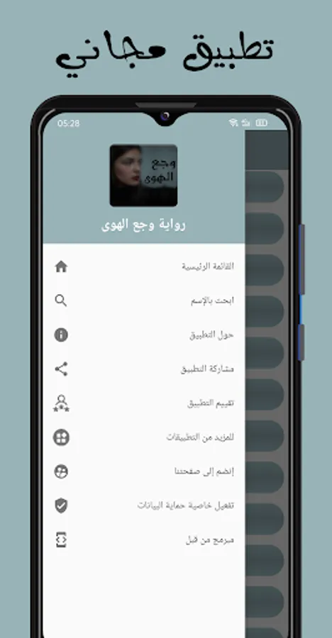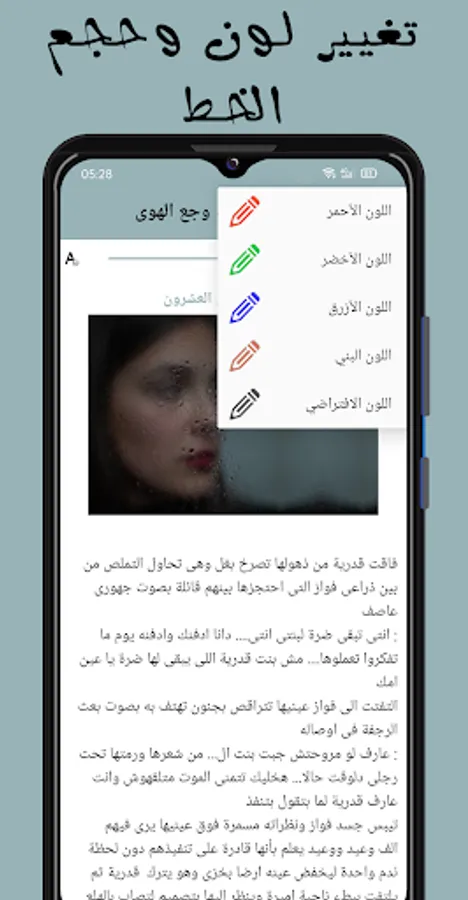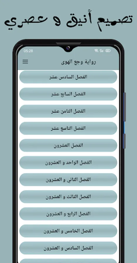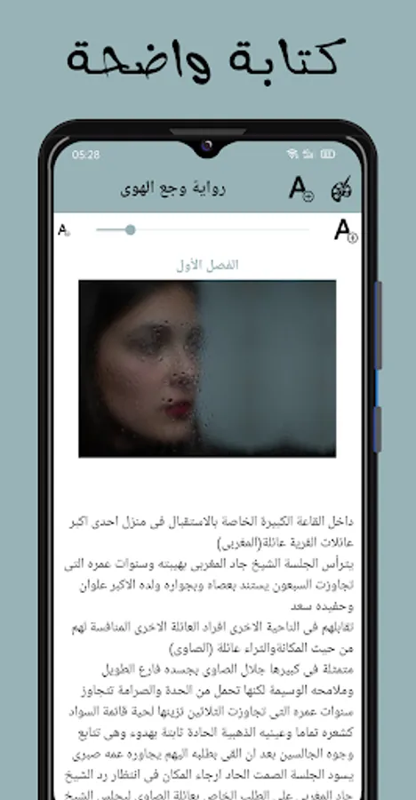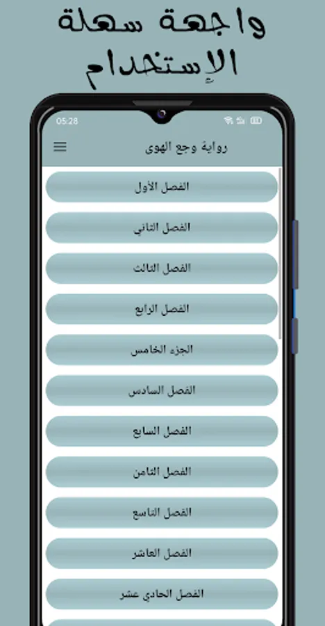 Features of the application of the novel Wage Al-Hawa (full chapters):