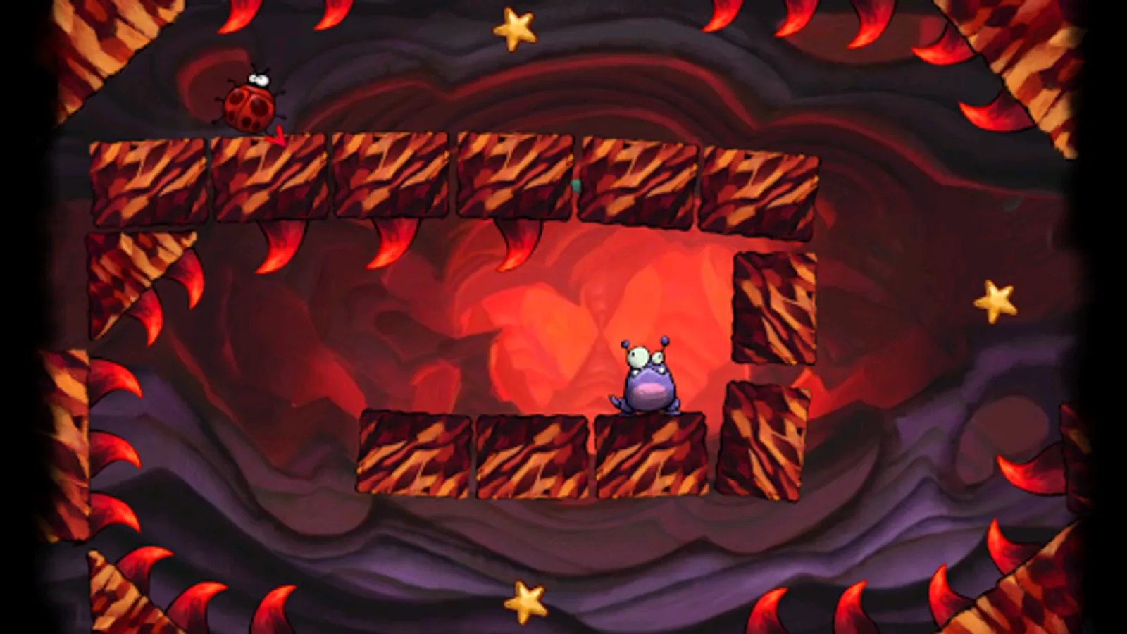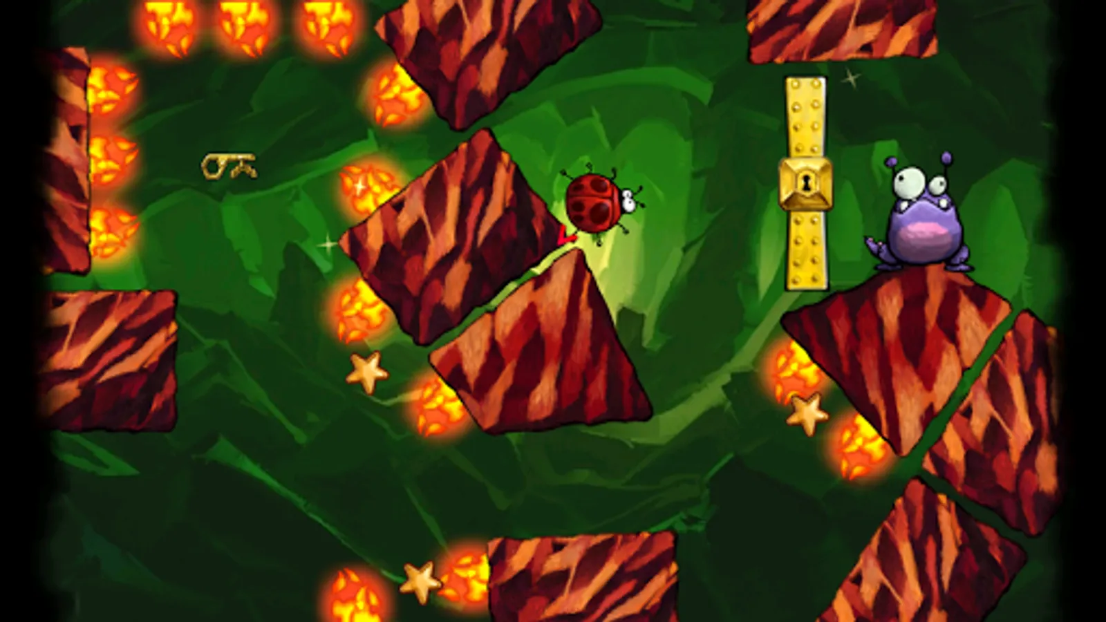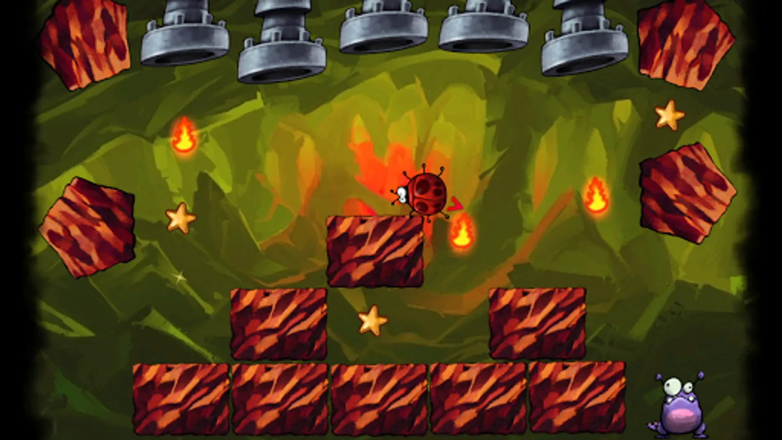 Nobody likes to be hungry and especially this cute violet creature that loves a tasty treat. Its not an easy task though as the food is made of a different kind of bugs which, as you might expect, don't want to be eaten. As you progress you will find some tricky parts on each level that are designed in order to make monster's life as miserable as possible by smashing, squeezing, grilling and piercing all those yummy bugs.