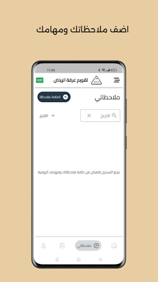 يمكنك التطبيق من متابعة مناسبات الغرفة والاطلاع على التقويم هجري وميلادي واضافة مهامك اليومية وملاحظاتك