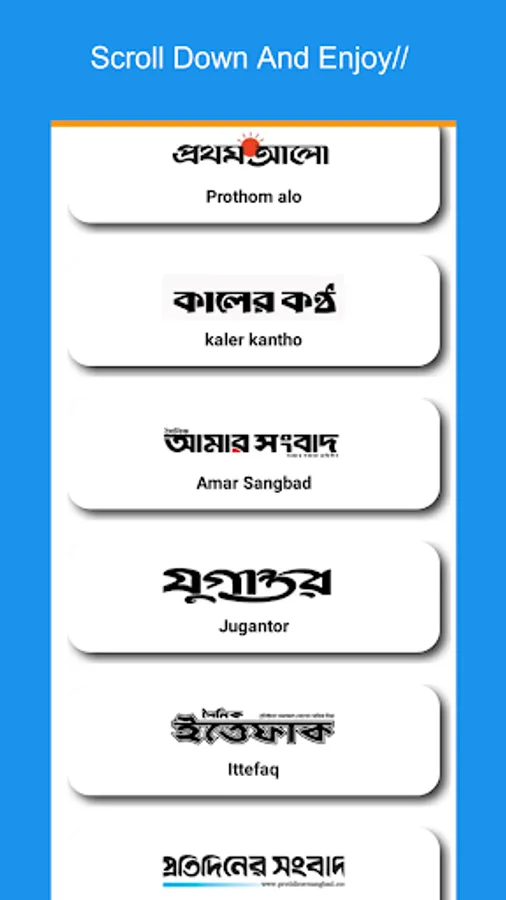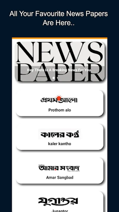 This is a News Paper app where we have try to store all kind of Bangla news papers.This app can reduce your time to finding daily news of Bangladesh.There are many famous news papers like 'প্রথম আলো,কালের কন্ঠ' etc.