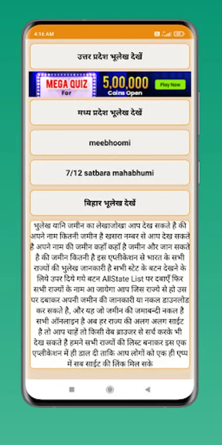 In this app you can see the land of you or your family or any person from your phone. In the app, you have to enter your Khasra number or name, so that you will know the copy of Khasra Khatauni. Along with this, you can also get information about other important schemes.