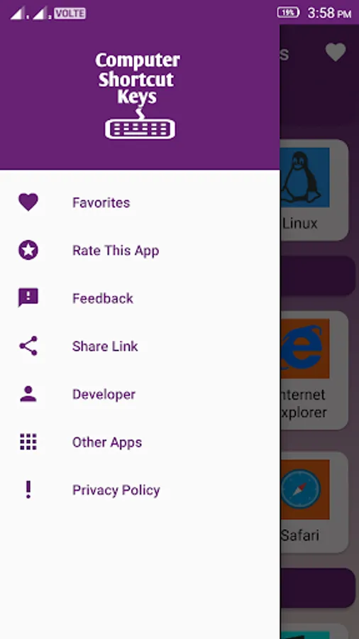 Computer Shortcut Keys App was developed where you can learn Keyboard Shortcut keys so that you can increase your work Speed and save your time. You can use keyboard Shortcuts instead of mouse. Main focused for the computer users to avoid using the Mouse.