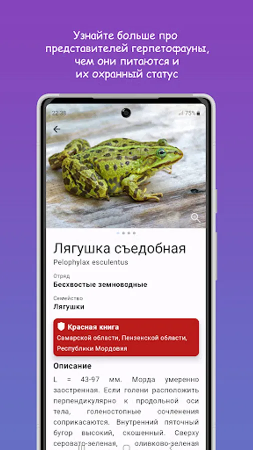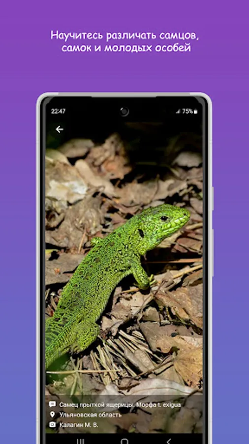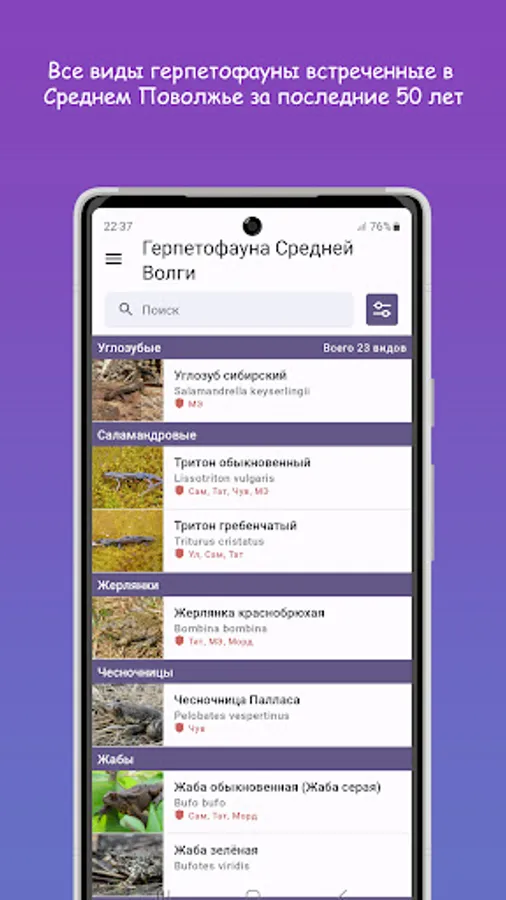 The application is the first of its kind guide to all types of herpetofauna encountered over the past 50 years in the Middle Volga region, and this is more than 20 species!