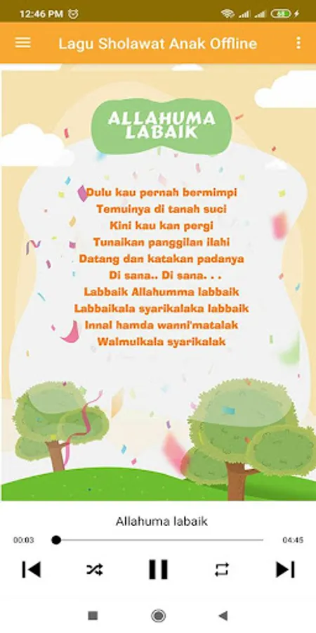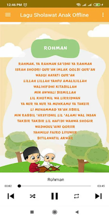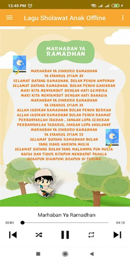 There are many sholawat songs for this child, hopefully this Islamic educational application can be useful for people who use it.