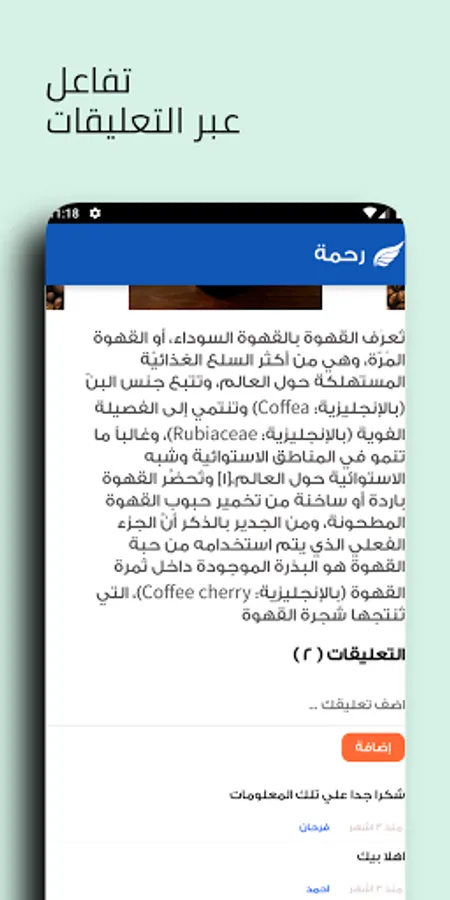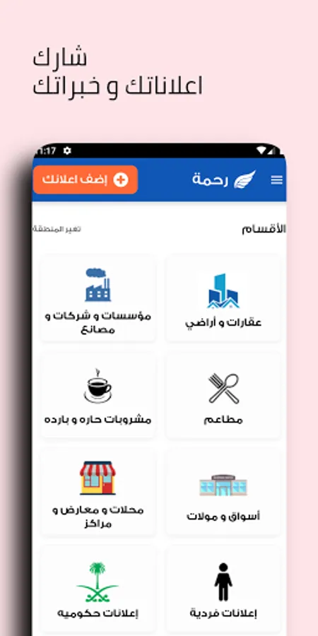 Where each user can publish his own experiences and evaluate them for the stores located within his area, and companies and projects can also publish to users of the Rahma application, where everyone can participate in our private community
