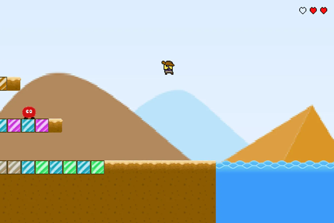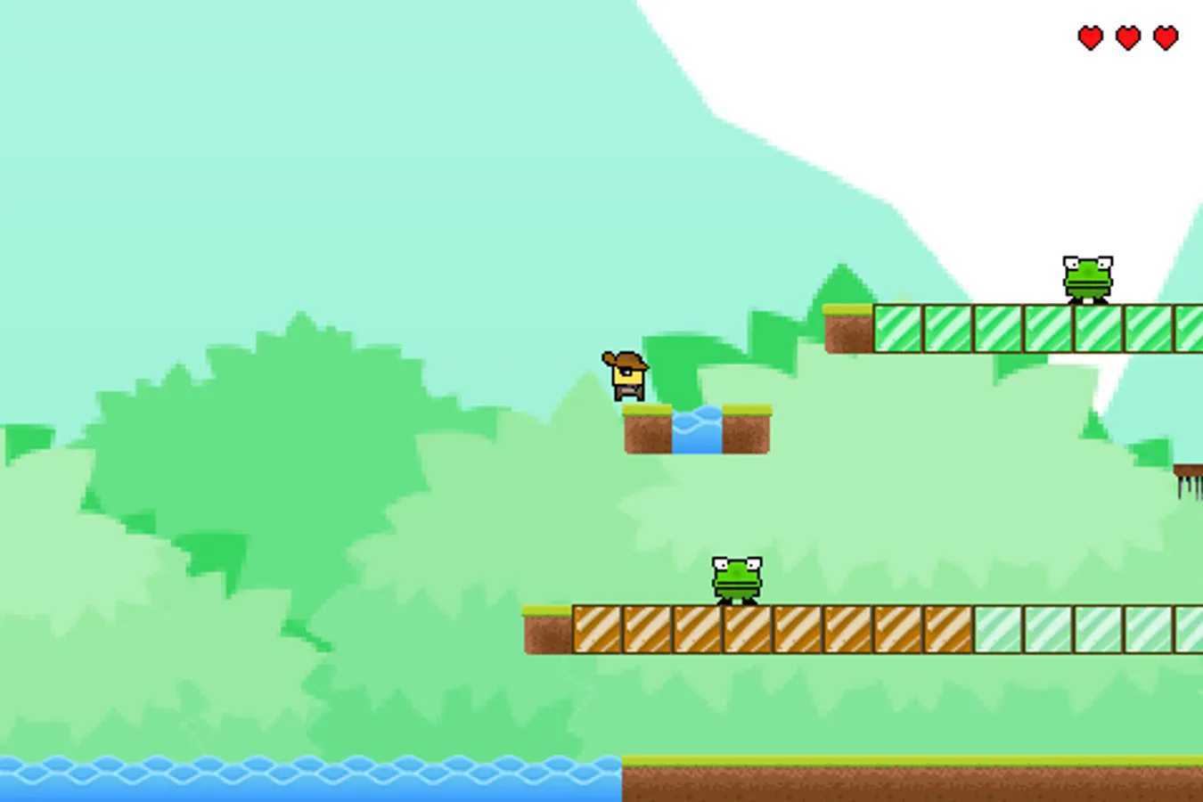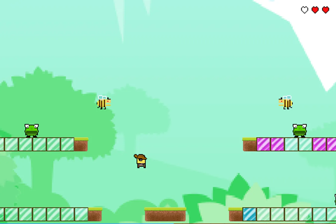 It's a classic 2D jump & collect game where the main character needs to avoid creatures while on the mission.