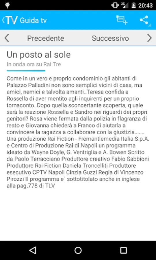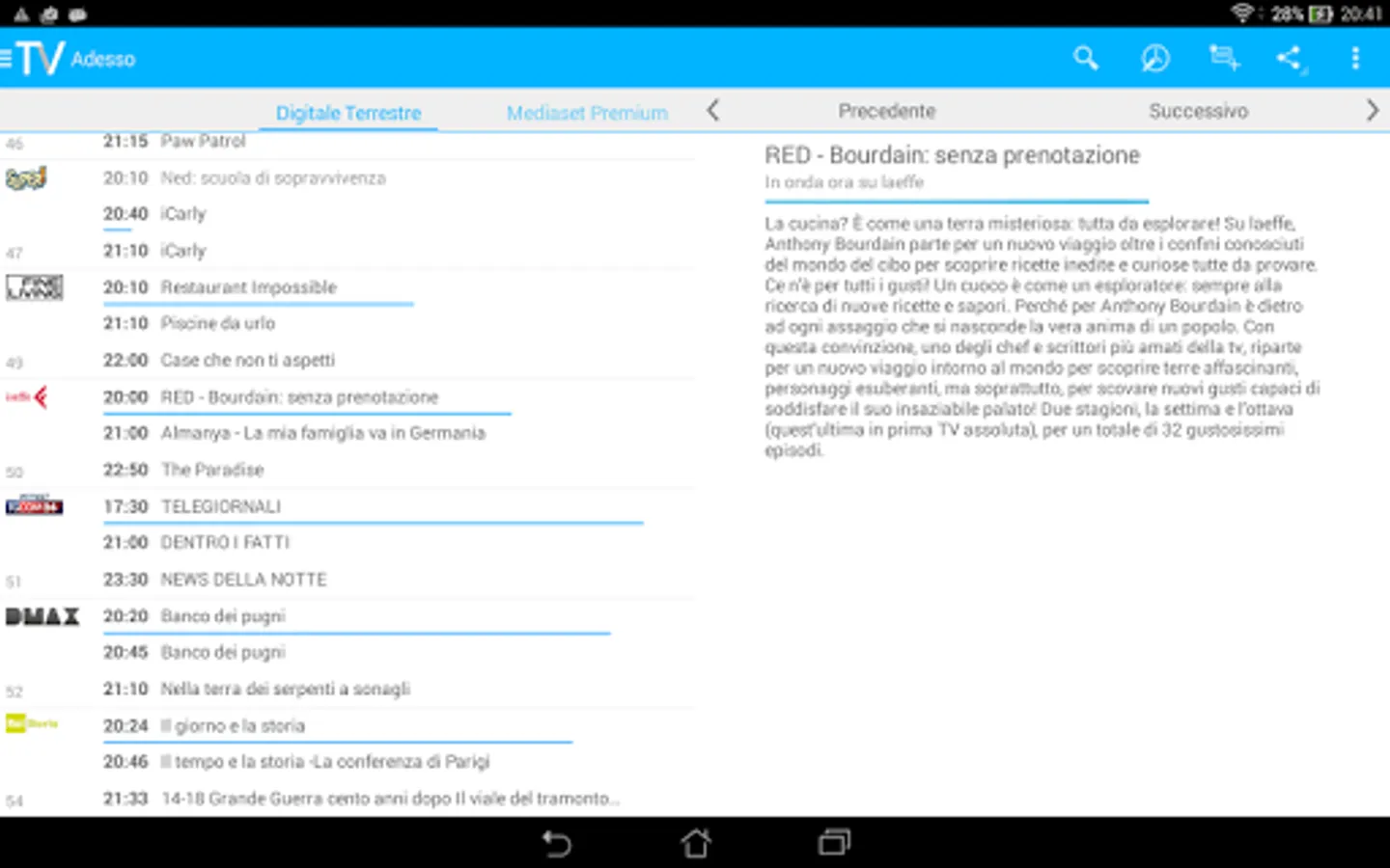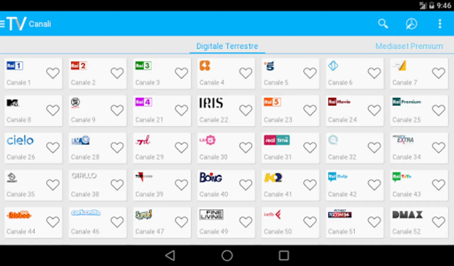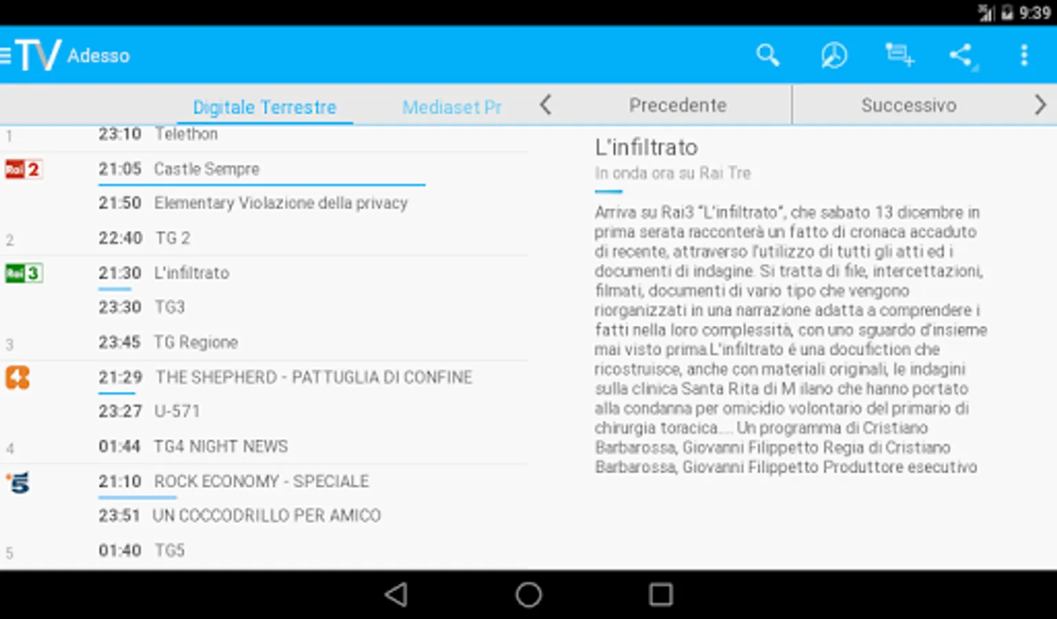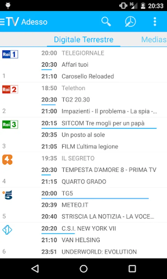 The tv guide for free with all Digital Terrestrial TV programs, Sky and Mediaset Premium.