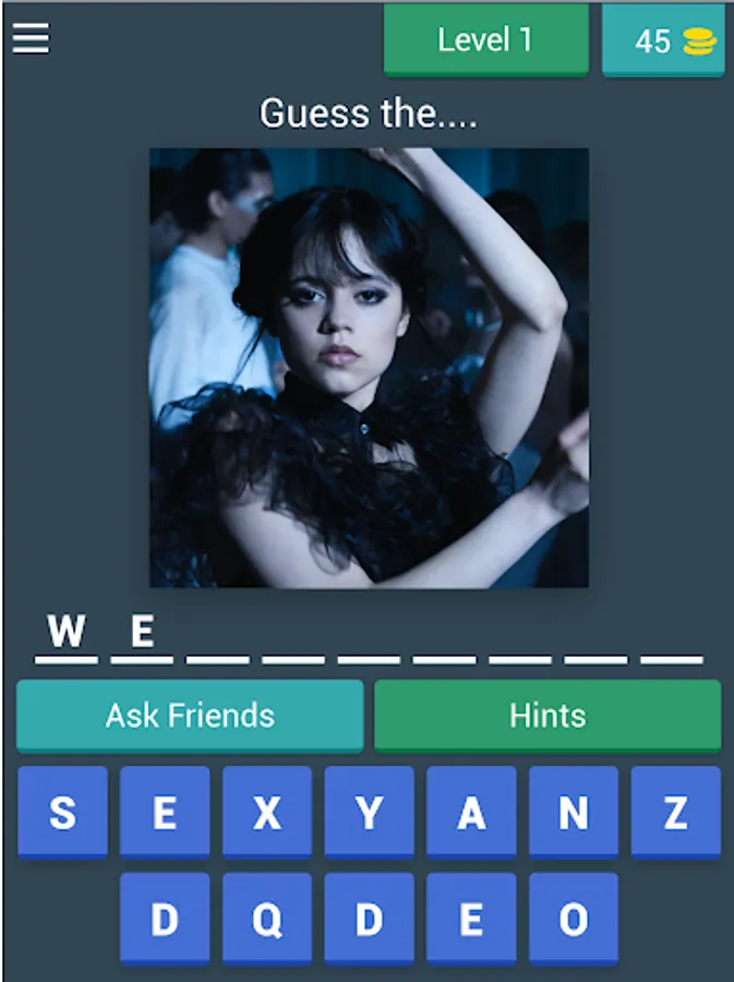 This game is based on Wednesday Netflix Series. If you are a fan of Wednesday Series then this game will be a piece of cake for you. You have to guess Wednesday Series Cast Name. Have Fun.