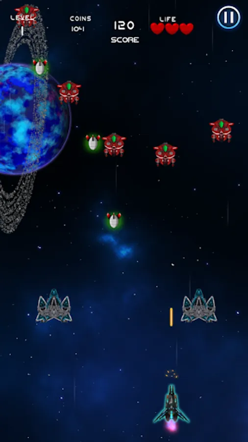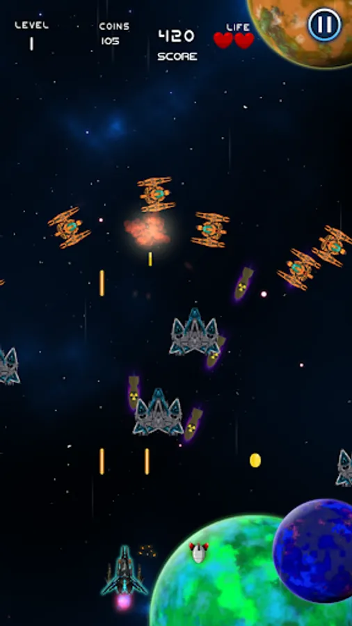 You are an ace space pilot, you wake up one day and find your galaxy is under attack by evil aliens spaceships. Grab your trusty space ship and fight back endless waves of alien intruders. It's an all out galactic war as you fight for your life in quick arcade action.
