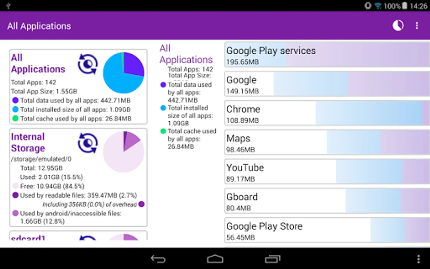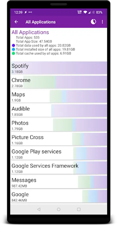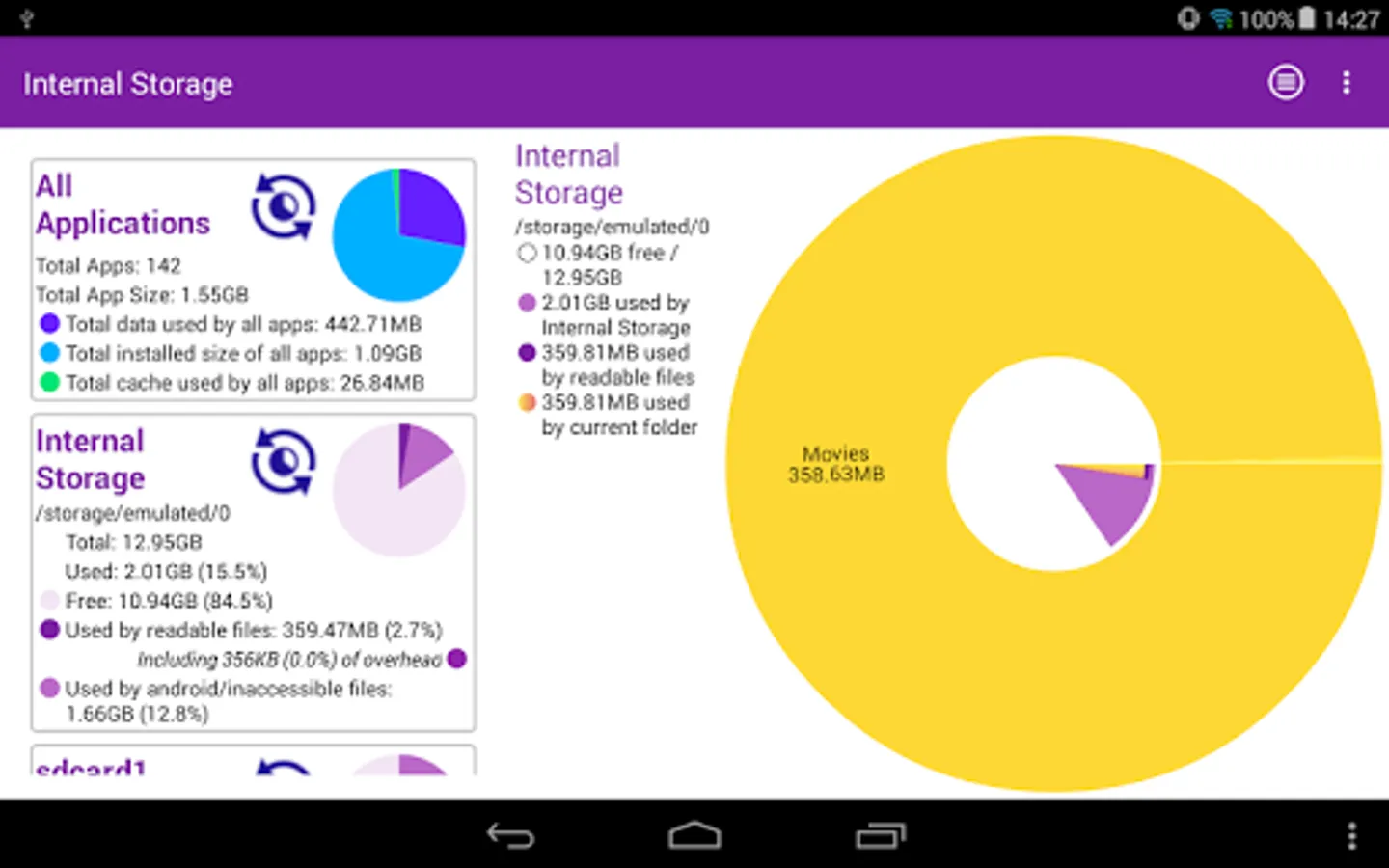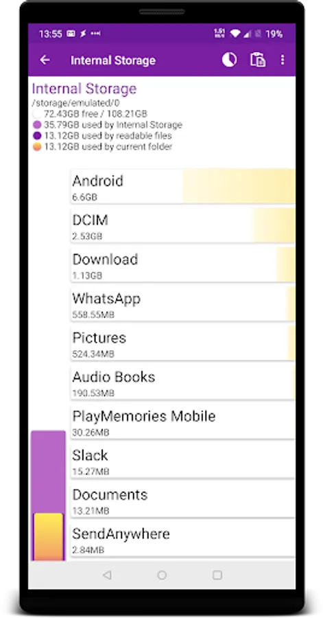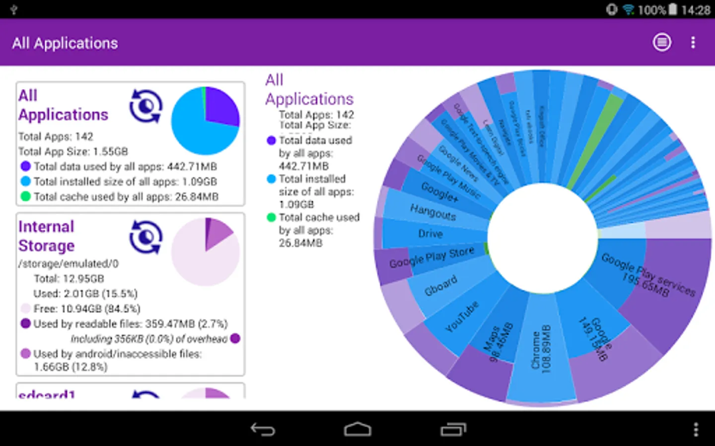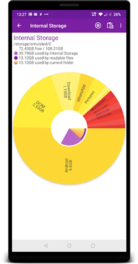 Storage Analyzer is a tool to help visualise and manage the space used on your phone, tablet, or Chromebook. The information is presented in a simple manner to make it easy to understand where your space has gone.