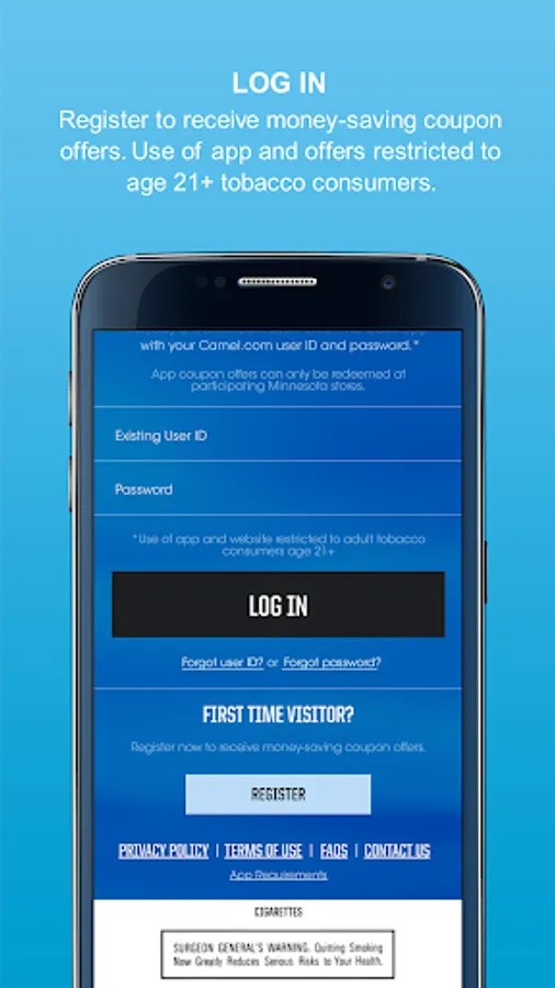 Use of app and offers restricted to tobacco consumers age 21+ after successful completion of the age-verification process.