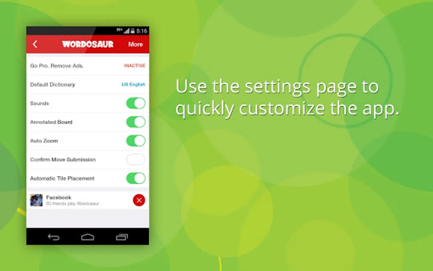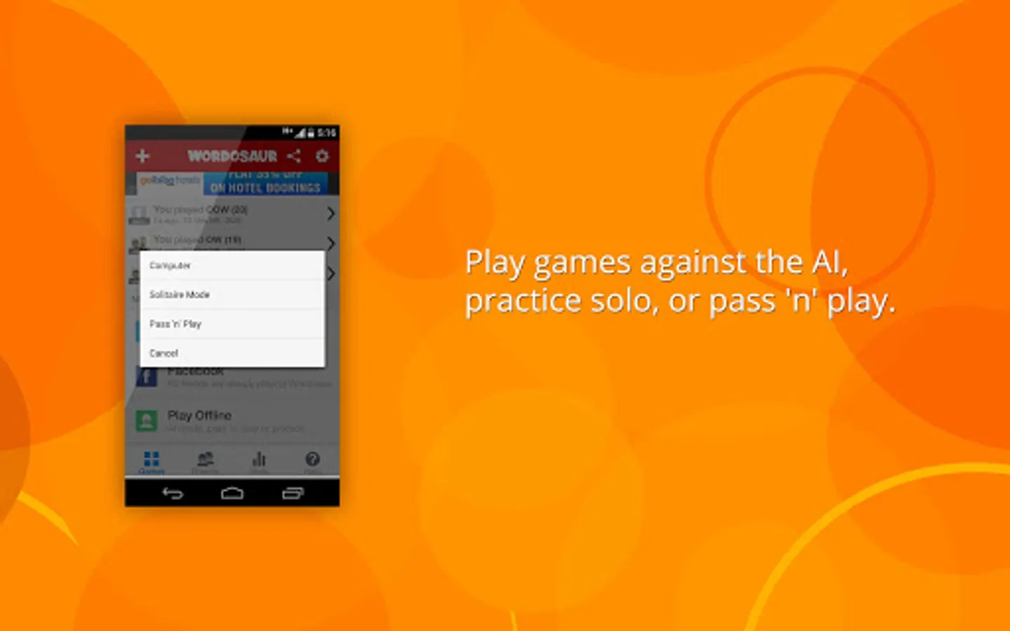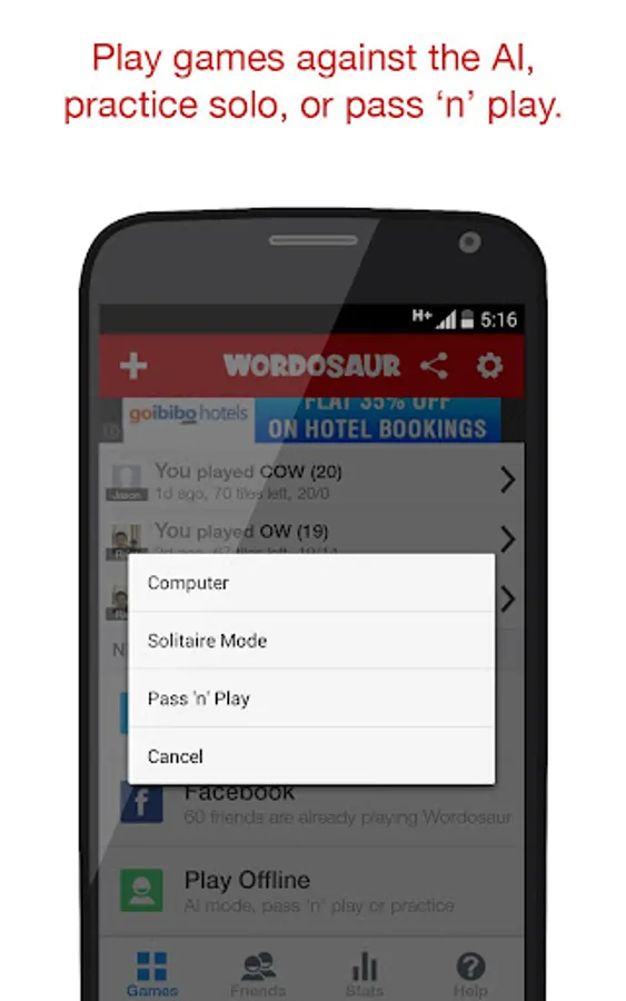 You can play Wordosaur in solo mode, match players from around the world and of course setup a competitive game with your friends!