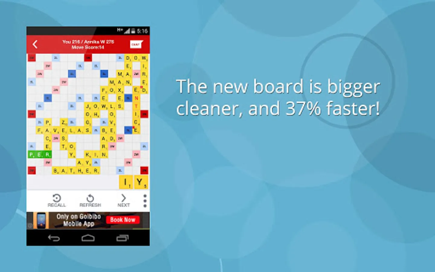 The word game rules are very simply. There are a fixed number of letter tiles in each game. Using these letters you need to create words on a predefined grid (board). Each time you create a word, the letters in your hand get replenished until the game is over. Generally it takes up to 10 moves per player for the game to finish.