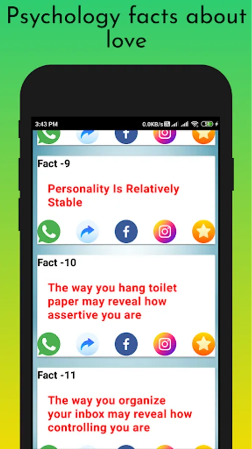 Check out this amazing app - Amazing Psychology facts. Below are features included in this app.