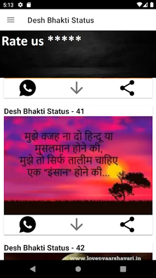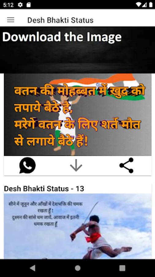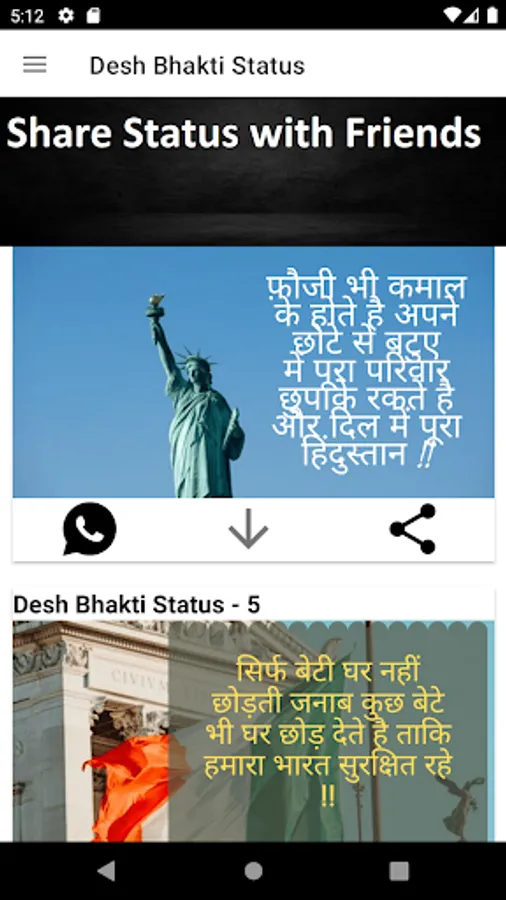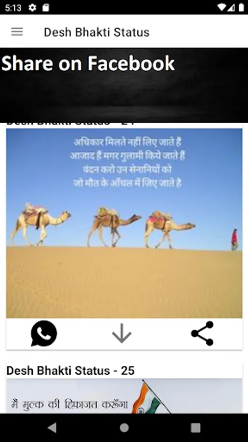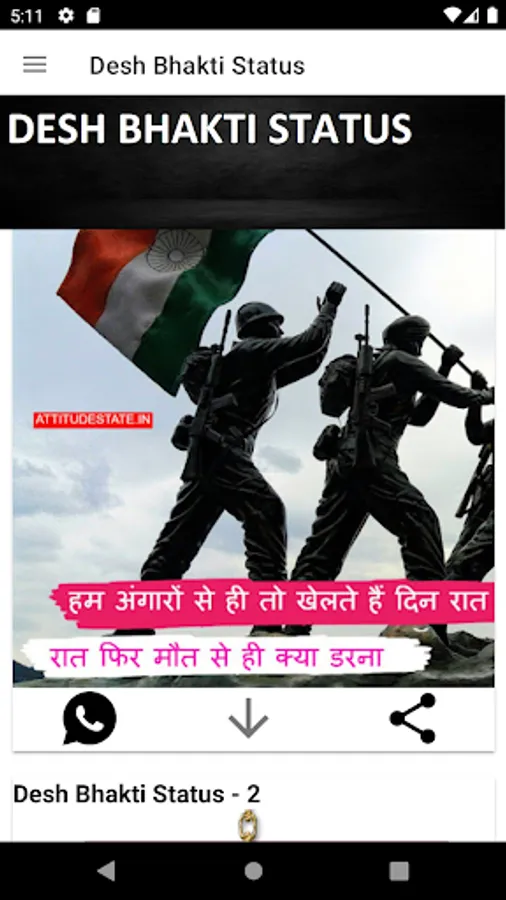 In this App, you will find Desh Bhakti status & Quotes. App has big list of देश भक्ति geet status.