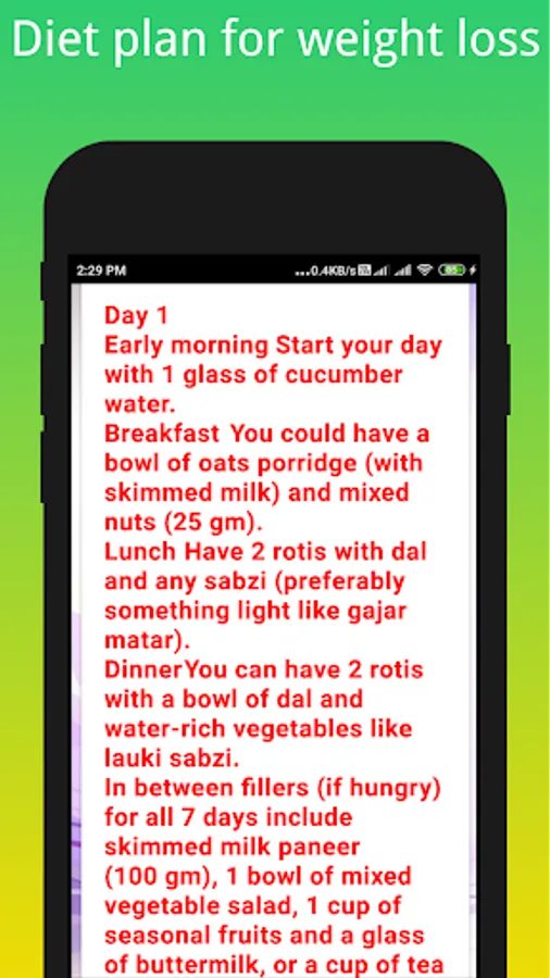 It also has diet plan for weight loss. we have 7 day diet plan for weight loss.