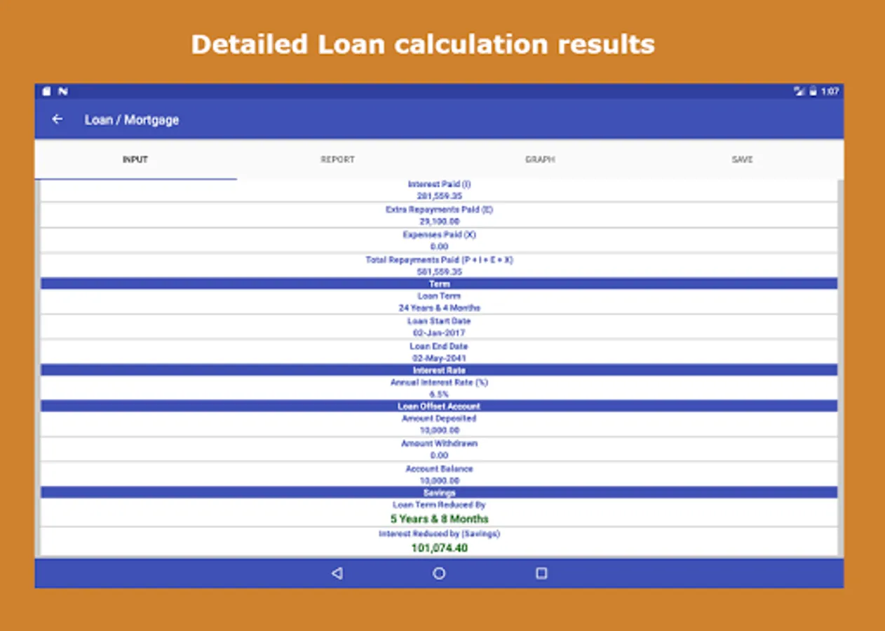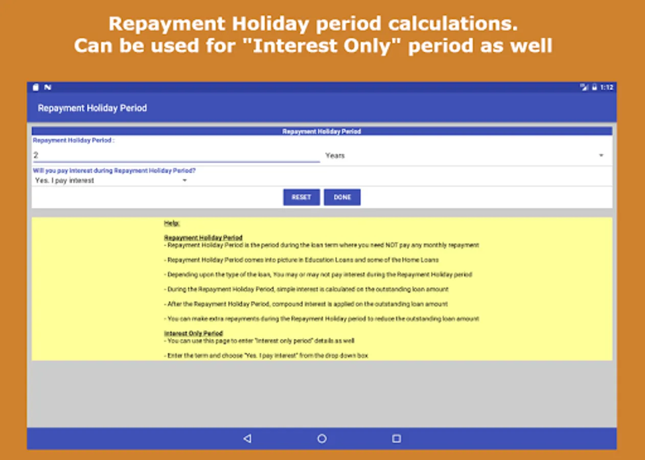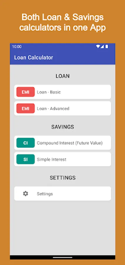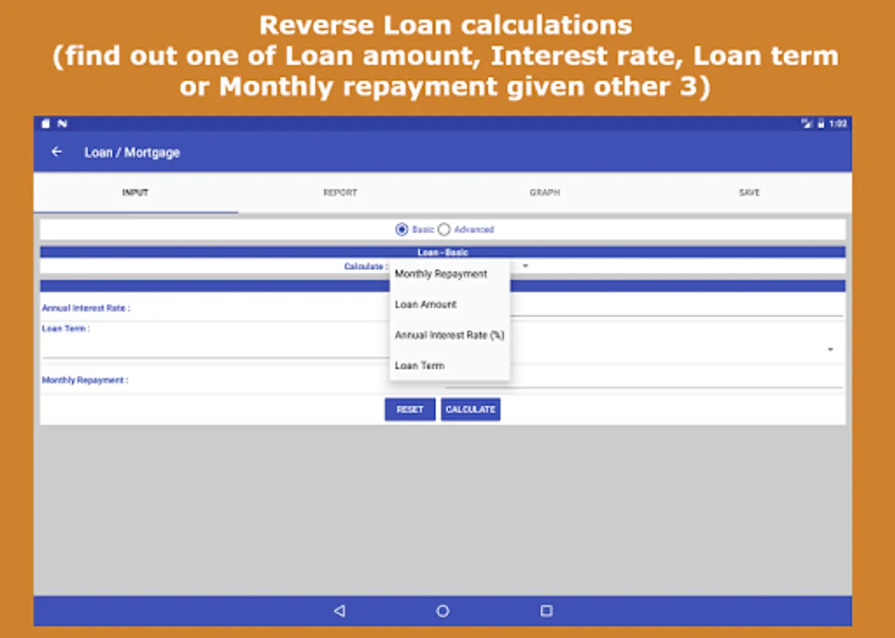 This App offers the following calculators for both Android Mobile Phones & Tablets.