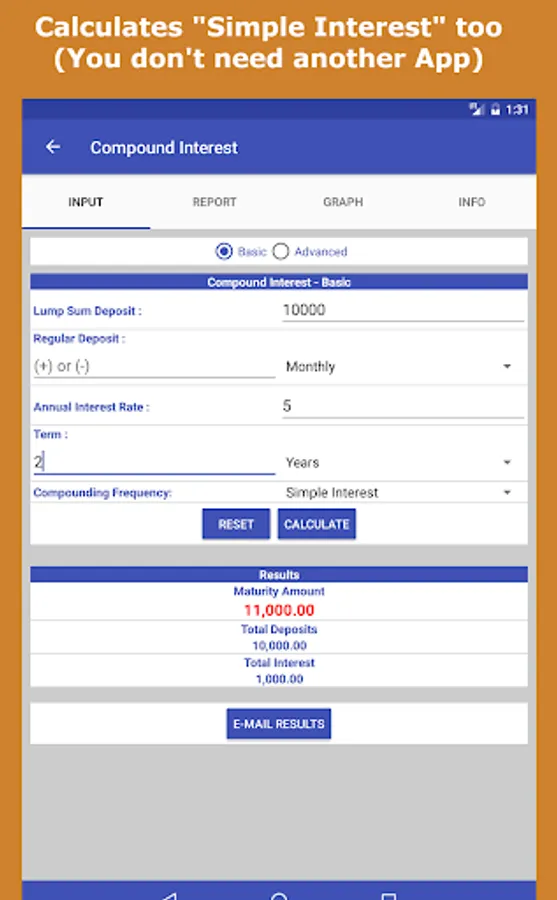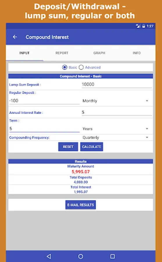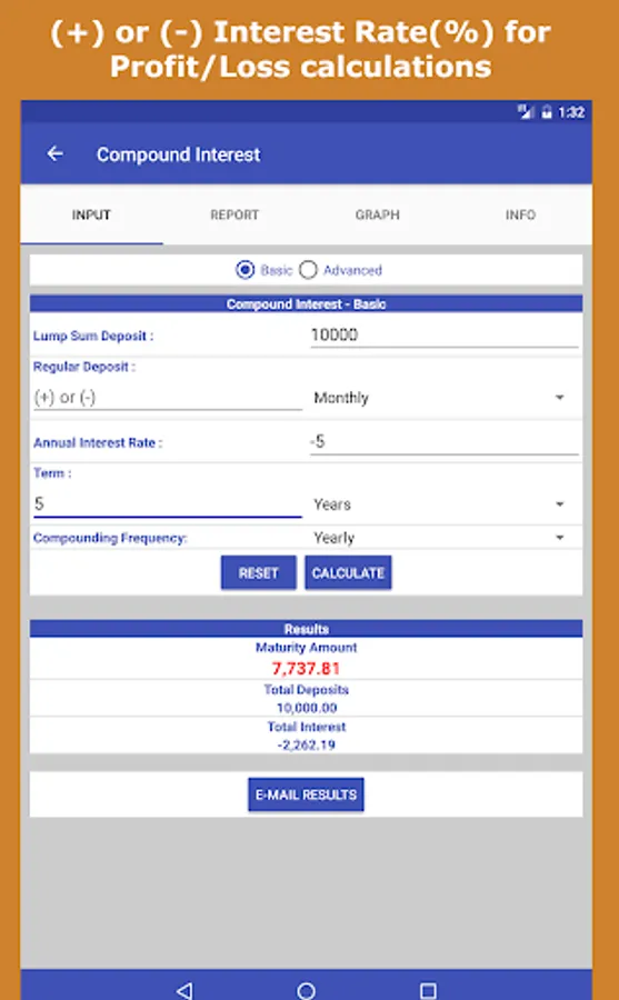 COMPOUND INTEREST CALCULATOR - FEATURES: