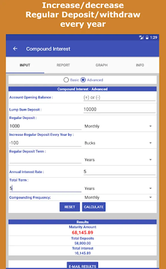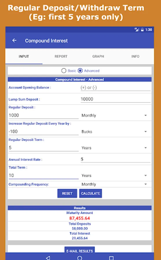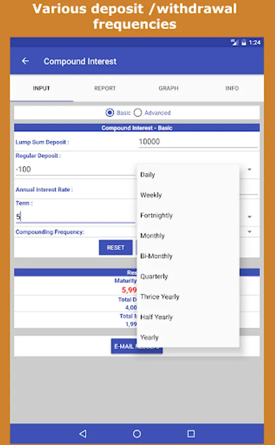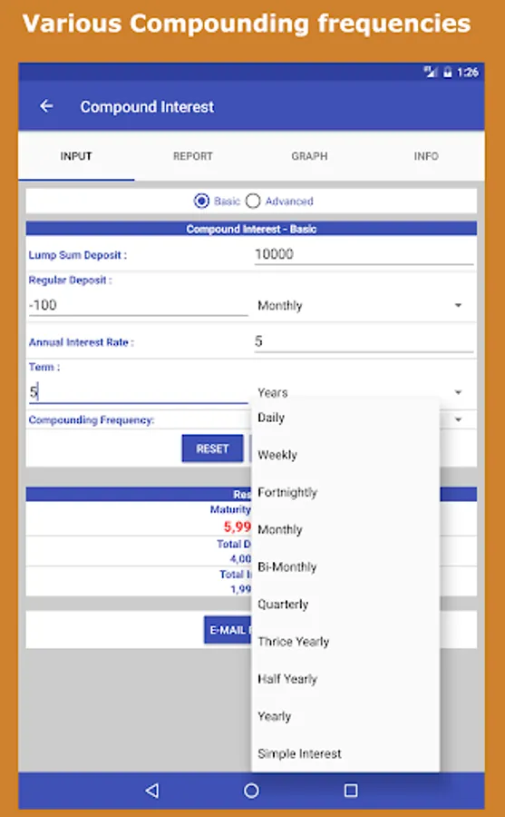 * Various Compounding frequencies - Daily, Weekly, Fortnightly, Monthly, Bi-Monthly, Quarterly, Thrice-Yearly, Half-Yearly & Yearly