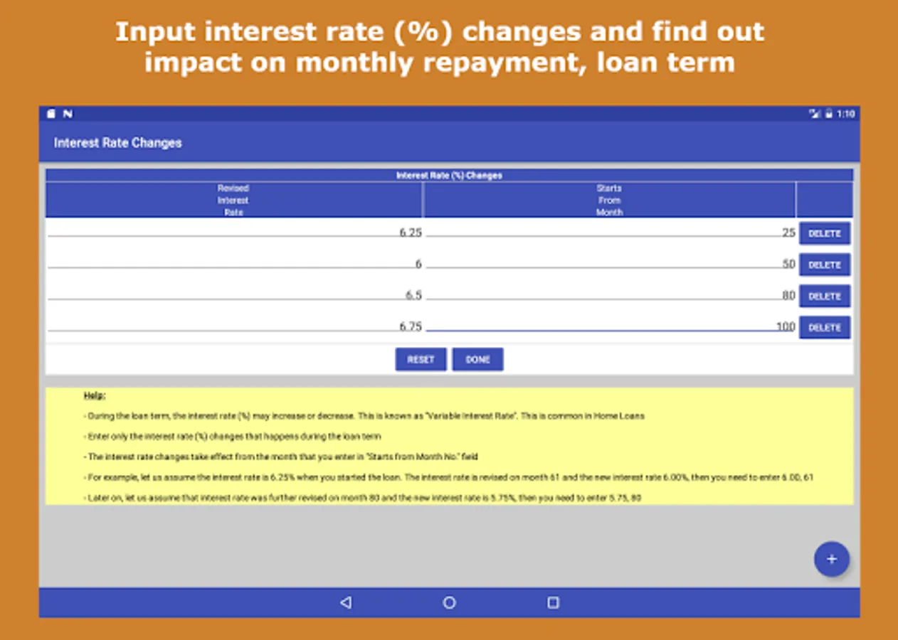 * Input Interest rate (%) changes and find out impact on monthly repayment, loan term