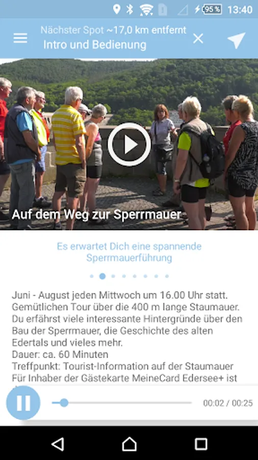 Thanks to our multisense algorithm, automatically triggered indoor and outdoor stops are supported Let yourself be carried away by the atmosphere and the impressions of the place of visit. Our guide will give you the exciting and interesting information. As text to read, as audio to listen to and as a photo or video to watch. Immerse yourself in areas that are otherwise hidden. Learn stories that are not in a book.