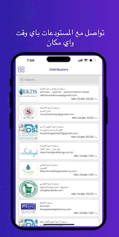 Jordanian distributors who distributes medication to pharmacies and sell products directly to Jordanian Pharmacies through B2B digital marketplace.