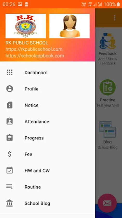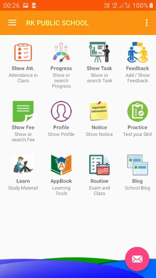 Access profile, attendance, deposit fee, news and events, Hw and CW, Check Progress, Study Material, Practice set. etc.