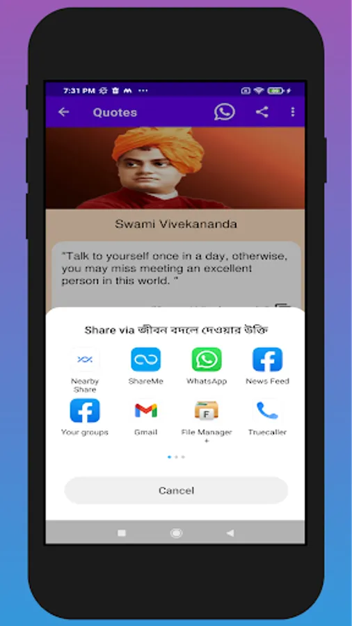 Download this App and made your life as wonderful, pretty and Always Feel Free to new and latest quotes and share and tell about our app to your friends, colleague and relatives .Our motivation app is filled with inspirational quotes and sayings that serve as positive reminders throughout the day.