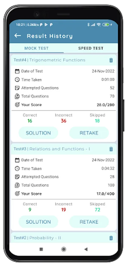 β Mock Test & Speed Test Result Records