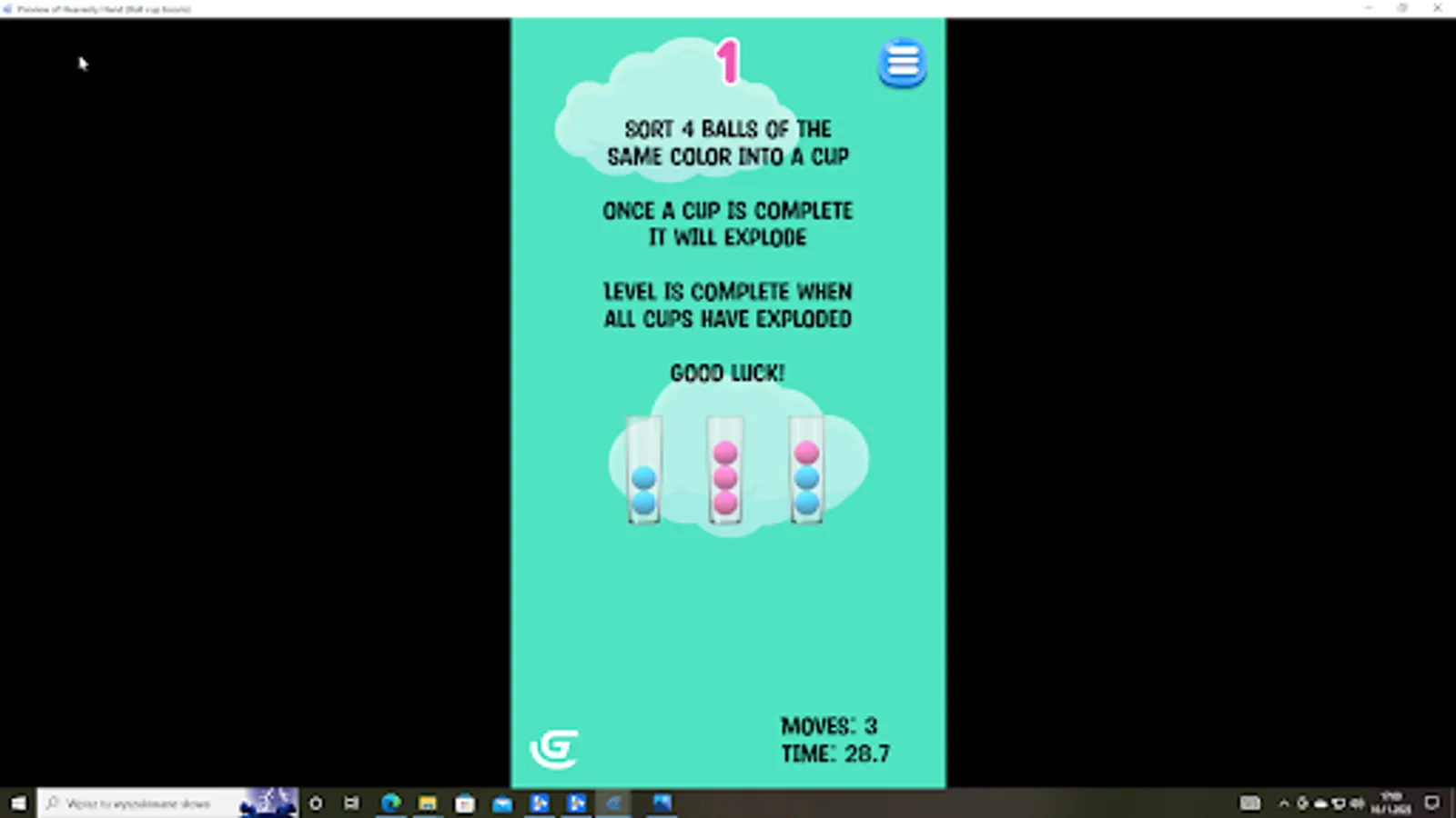 Sort 4 balls of the same color into a cup to make it explode.