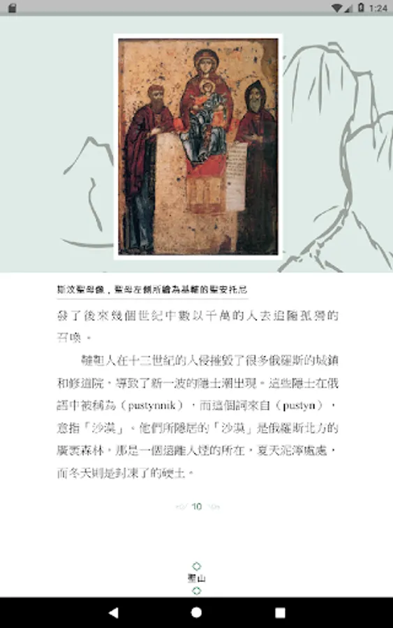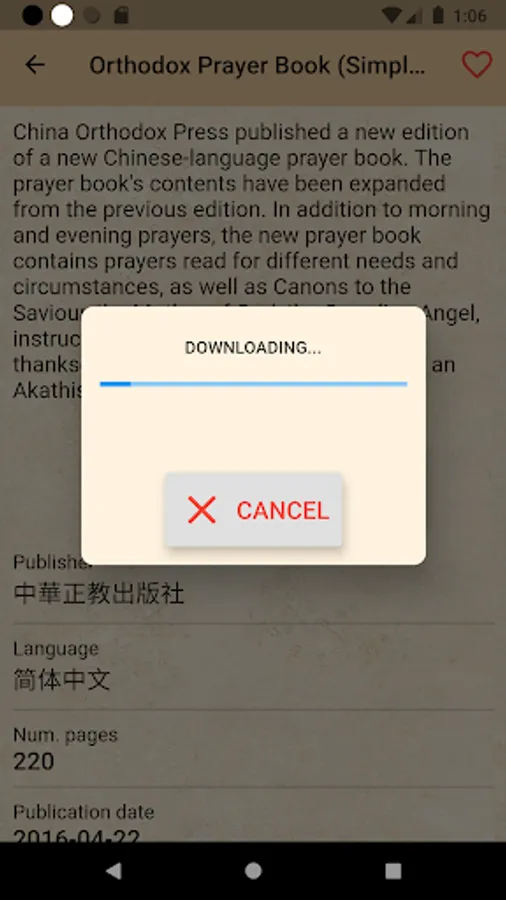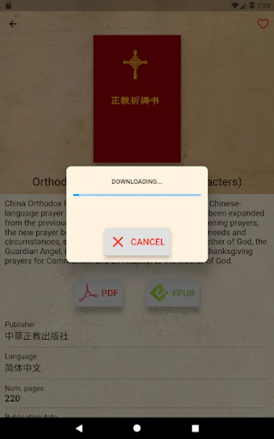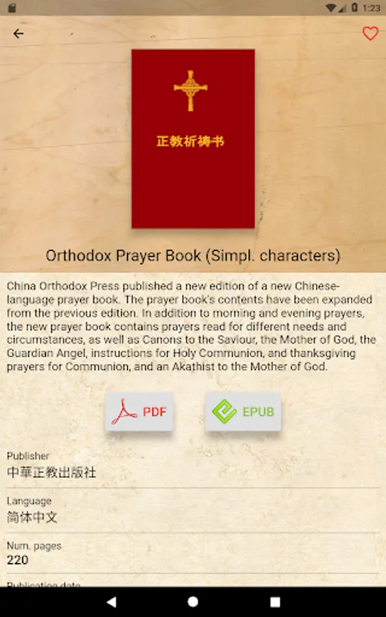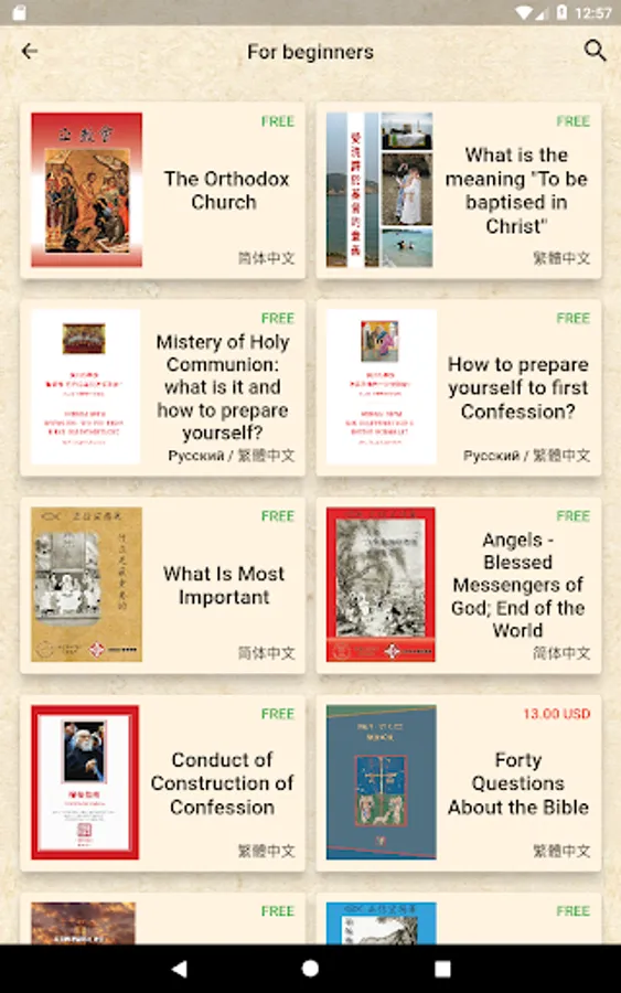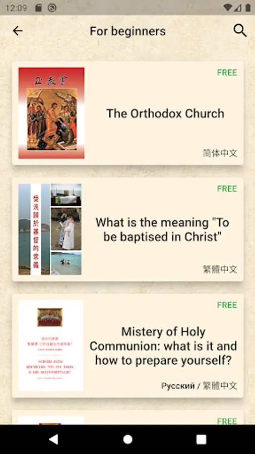 The app includes 100+ books about Orthodox Christianity in Chinese (Simplified and Traditional characters), English, and Russian languages. The book format is either PDF or EPUB. Most books are available for free.