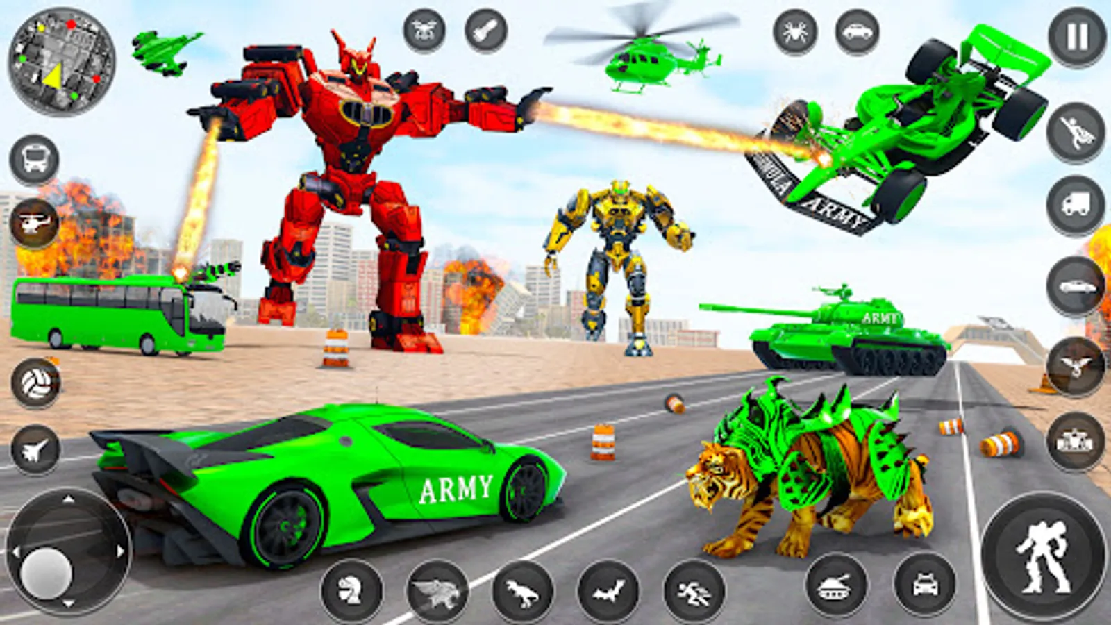Are you excited enter transformation robot and mech robot games of flying dino robot games transforming. If you like transformation games to play robot transform games & Army Tank Game Robot Car Games with superpowers ability in superhero robot games then get a muscle robot car game. Transform into flying bike robot in robot bike racing and drive in futuristic city of flying robot games, drive motorcar and perform car stunts with mega robot war games 3d. What are you waiting for? Let's start this transform game of army tank with robot boy and complete impossible mission in real robot games 3d.