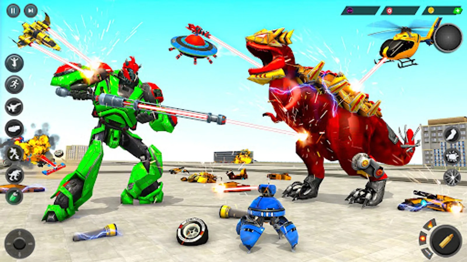 Robot transforming game & dino robot games car game of mech commander is not simply a robot transform game, it is a dino robot rampage game destruction derby into a closed arena in a car robot field master. Play the role of real superheroes in ultimate bus robot fighting 3d and dino transform car games in the city. Go and face the super power flying green robot to maintain the peace of the environment in flying car attack games. Air battle of jet robots and flying robot buses is expected to be among the most dangerous transform robot wars and transforming battle. In this car super robot dino games transform mech robot and robot bus driving game, you have to take complete control over the city battle against evil robots in dino robot transform game.