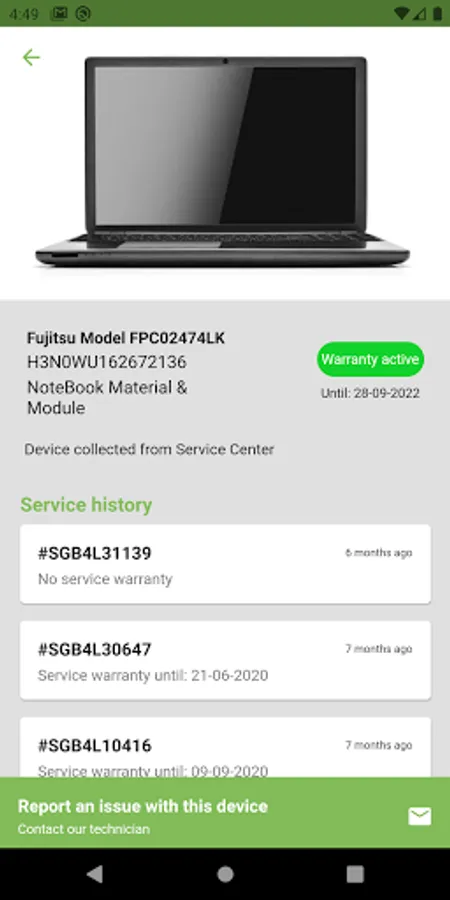 Register your Fujitsu devices and get your service records, service status and status update notification in app. Report your devices issues or contact our technician in app.