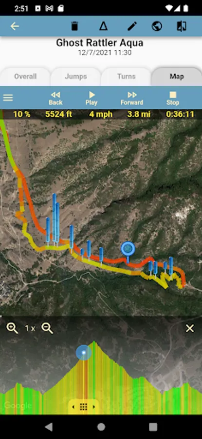 - 3d interactive map showing actual path traveled in 3 dimensions with color-coded elevation grade