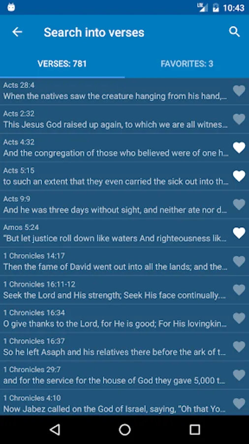 Save your favorites verses in one click and share them on Facebook or elsewhere easily.