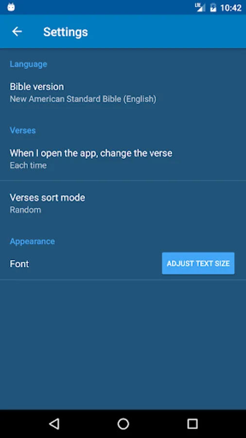 Very easy to use. Some verses are very random ie just saying a few names in Bible. Other than that this is very inspiring and worth installing. Wished I could set up a notification like my other apps.