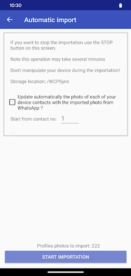 The import process repeats the steps automatically for you and for each of your contacts to save all photos effortlessly.