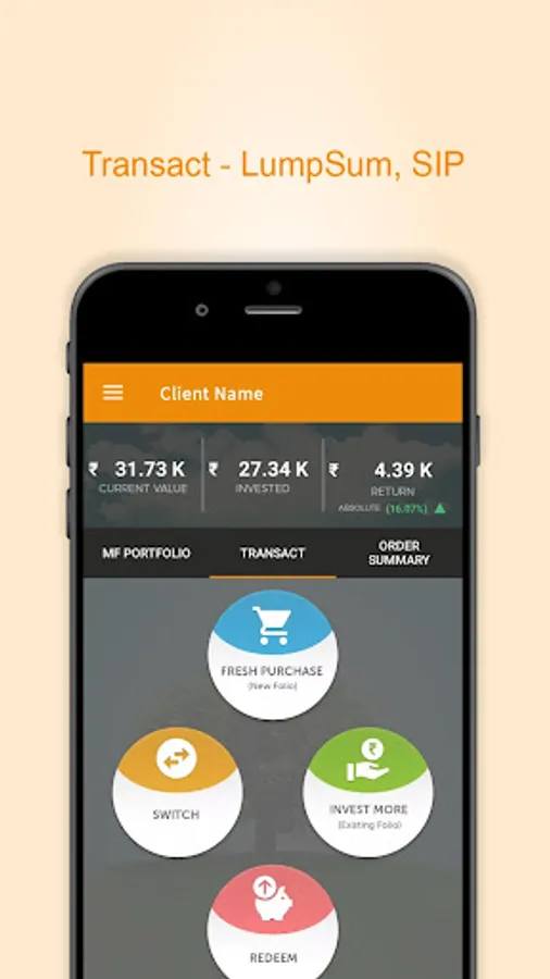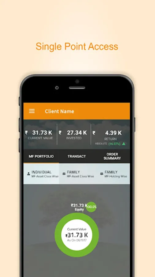 Transact, Track & Manage your Mutual Fund investment through single mobile app.