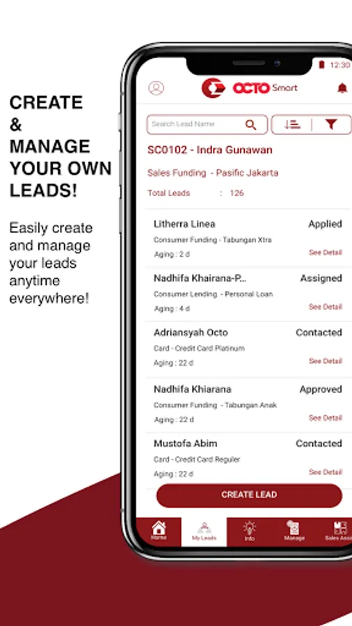 OCTO Smart application is created specifically for Relationship Managers, Sales, Branch Managers, and Senior Branch Managers, and sale-forces at selected CIMB Niaga branches with mobile-friendly applications & interactive design, which offer the fastest and optimal way to provide leads, acceptance leads, and leads monitoring.
