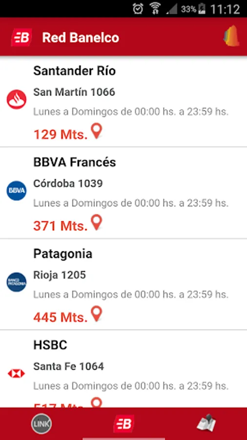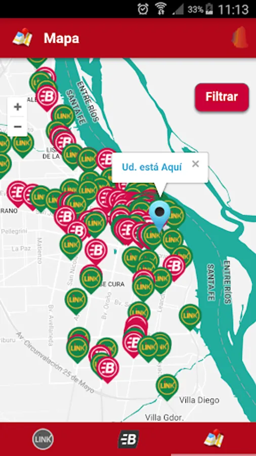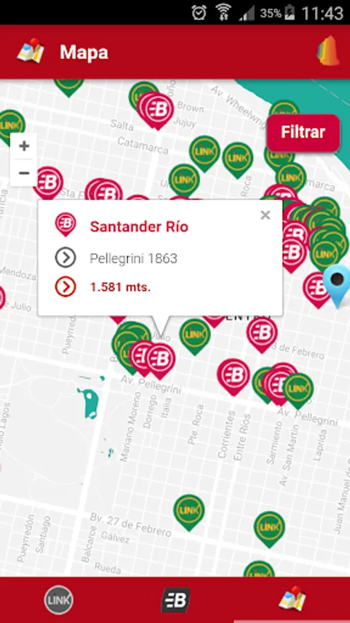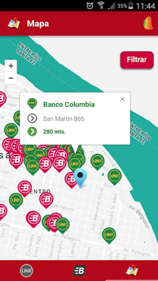 ✔ Offer citizens and tourists who visit the city of Rosario the availability of ATMs closest to their current location by integrating the Link and Banelco networks into a single app