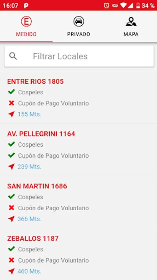 Our app allows the user to know, depending on your current location, what are the Local closest to the purchase of coin blanks and payment coupons voluntary , as well as identify beaches private parking found in the downtown of the city of Rosario.