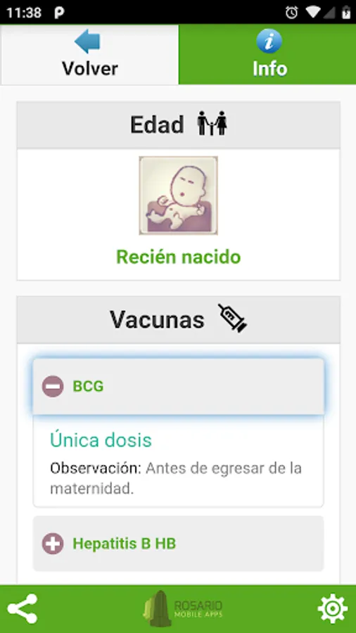 Our application displays the National Immunization Schedule 2016 published by the Ministry of Health of Argentina