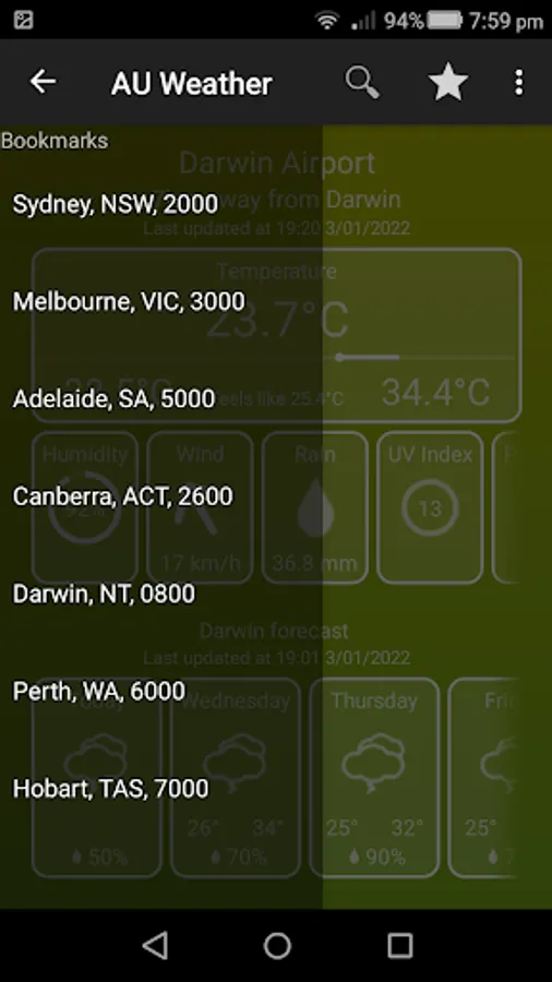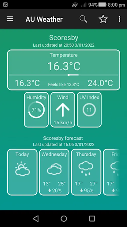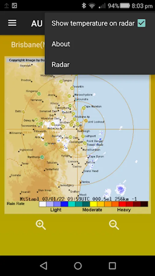 - Check BoM rain radar at any zoom level, see temperatures on radar