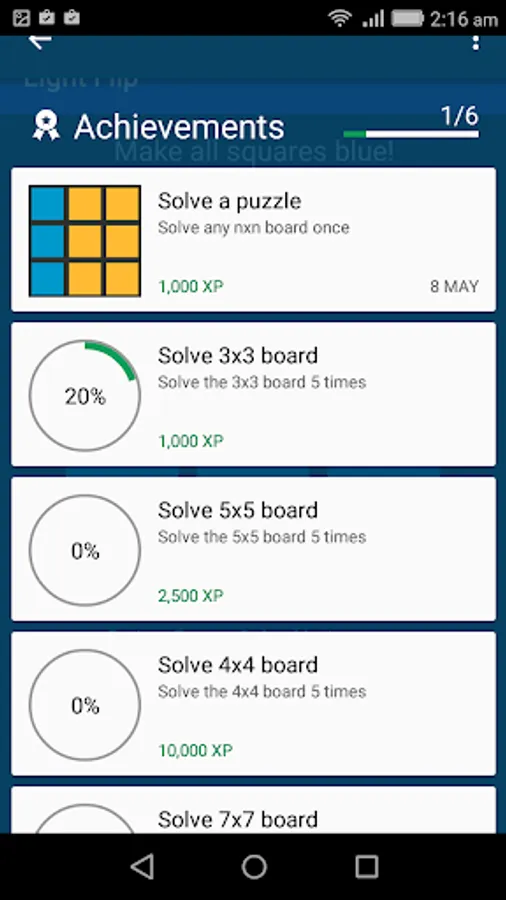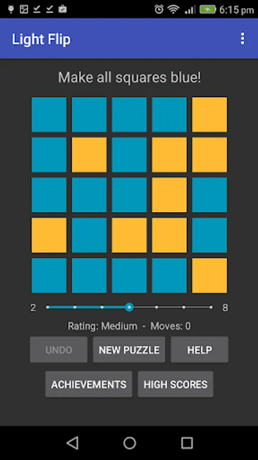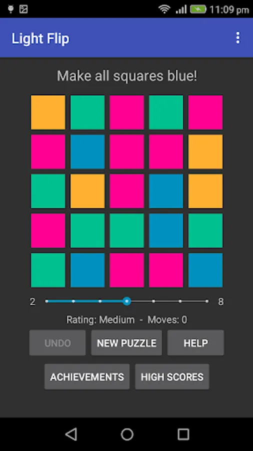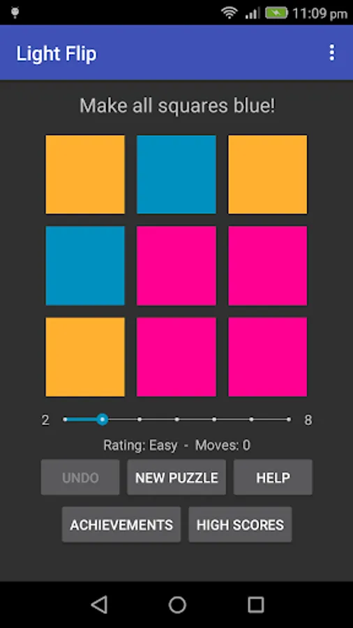Tap a tile to change the color of all tiles in the same row or column. Color all the tiles blue to solve the puzzle! The first few boards are easy, but the larger boards are real brain teasers! Choose even harder puzzles where colors are cycled in 3 or 4 states!