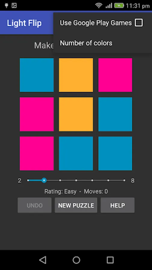 Test your logic skills in the Light Flip puzzle! Invert or cycle through colors as you tap tiles.
