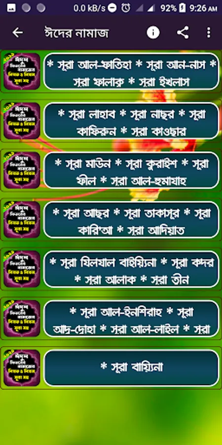 ** ঈদুল ফিতরের নামাজ ও ঈদুল আযহা নামাজের সঠিক নিয়ম কানুন। এবং কুরআনের ছোট ২৫ টি সূরা।